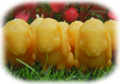 Hand-poured, highly detailed bunny candles made from natural, clean-burning, air-purifying pure beeswax. Naturally coloured and scented by bees. Approx 66 x 43 x 34mm, 40g. Click image for more photos.
